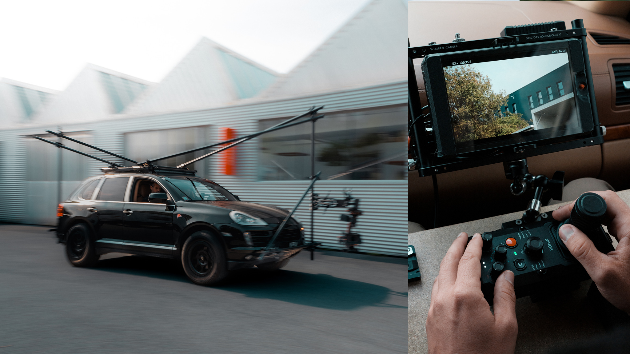 Our proven gold standard is the Flowcine Blackarm mounted onto a speedrail rig. Suitable and secure mounting point on the chase car provide the most stable base for the camera arm to ensure optimal responsiveness of the Flowcine Blackarm to movements, and ensure that the camera remains stable and well-balanced.